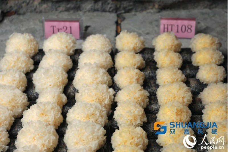 孫淑靜介紹,從現(xiàn)場測產(chǎn)情況來看,新菌株的子實體呈淡黃色、朵形圓整緊致、耳片厚實內(nèi)卷,平均產(chǎn)量相較目前主栽品種高出10%,總酚、黃酮含量分別提高約55%、60%,表現(xiàn)出豐產(chǎn)性好、活性成分含量高的特點,十分適合用作銀耳深加工產(chǎn)品原料。